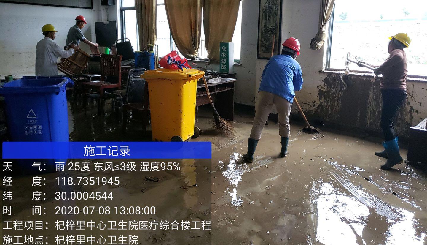 2020年7月7日,由于持續(xù)多日的降水,黃山市歙縣遭遇五十年一遇的大洪水,山洪暴發(fā)后,歙縣杞梓里中心衛(wèi)生院受災(zāi)嚴(yán)重。8號-12號黃山建工集團(tuán)歙縣杞梓里中心衛(wèi)生院醫(yī)療綜合樓工程項(xiàng)目部,自發(fā)組織人員幫助衛(wèi)生院進(jìn)行災(zāi)后清理等志愿服務(wù)。