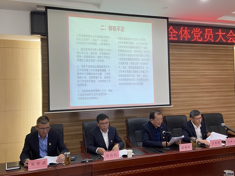 在莊嚴(yán)肅穆的國歌聲中,集團公司黨總支換屆選舉拉開了序幕。按照既定會議流程,集團黨支部書記項端陽首先在圍繞政治建設(shè)、思想建設(shè)、組織建設(shè)、作風(fēng)建設(shè)、廉政建設(shè)和黨建深化與創(chuàng)新等方面系統(tǒng)地回顧了近幾年來的工作,分析了黨建工作面臨的形勢與存在的問題。同時對下一屆集團黨總支工作提出了五點建議。經(jīng)過全體黨員認(rèn)真審議,通過了總支書記項端陽同志所做的報告。