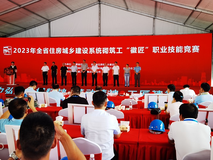為全面貫徹落實(shí)黨的二十大精神,認(rèn)真貫徹落實(shí)習(xí)近平總書記關(guān)于安徽工作的重要講話重要指示精神,廣泛和深入開展勞動(dòng)技能競賽,充分發(fā)揮工人階級(jí)主力軍作用,促進(jìn)廣大一線作業(yè)人員技能水平全面提升,推動(dòng)安徽建筑行業(yè)高質(zhì)量發(fā)展。7月14日至15日,由安徽省總工會(huì)、安徽省住房和城鄉(xiāng)建設(shè)廳主辦,安徽省建設(shè)建材工會(huì)、合肥市總工會(huì)安徽省建筑業(yè)協(xié)會(huì)承辦,安徽建工三建集團(tuán)有限公司協(xié)辦的2023年全省住建系統(tǒng)砌筑工職業(yè)技能大賽決賽在合肥舉行。
