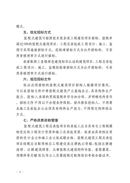 關(guān)于加強(qiáng)裝配式建筑項(xiàng)目實(shí)施及招標(biāo)投標(biāo)活動(dòng)管理有關(guān)工作的通知